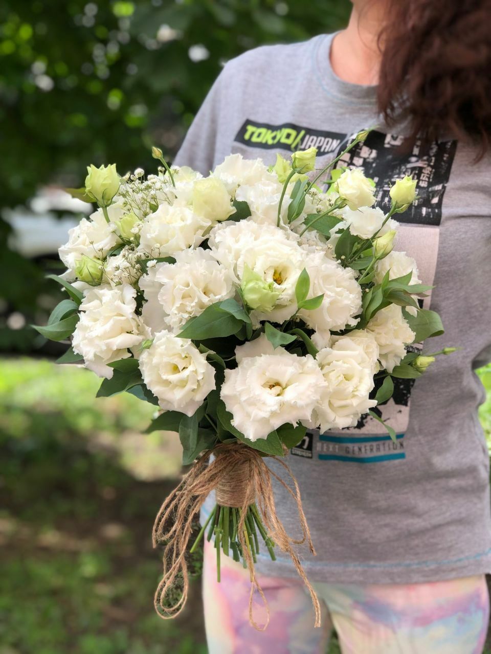 Эустомы, гипсофилы и эвкалипт создадут неповторимую композицию для вашего торжества. Нежный белый букет, оттененный зеленью эвкалипта создаст праздничное настроение всем участникам события. А чтобы всё было идеально, мы предлагаем перевязать букет бечевкой или атласной лентой – решать только вам!