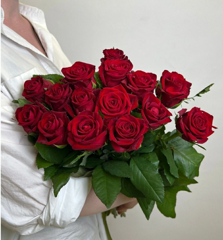 Классические красные розы, выращенные на лучших российских плантациях, собраны с безупречным вкусом и перевязаны элегантной атласной лентой.