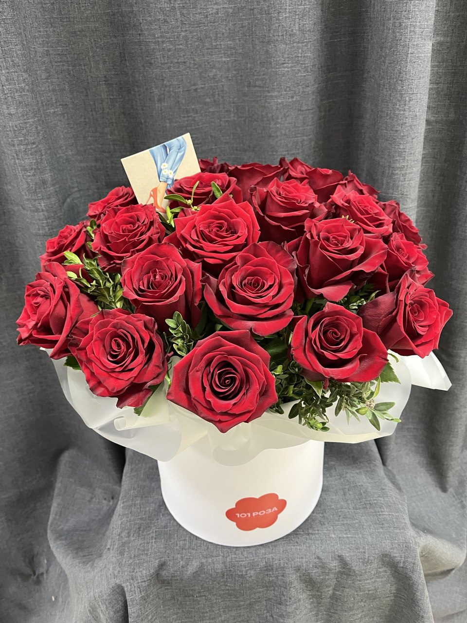 Изысканная композиция, воплощающая элегантность и безупречный вкус. Роскошные красные розы сорта Эксплорер в светлой коробке создают образ истинной классики, которая никогда не выходит из моды.
