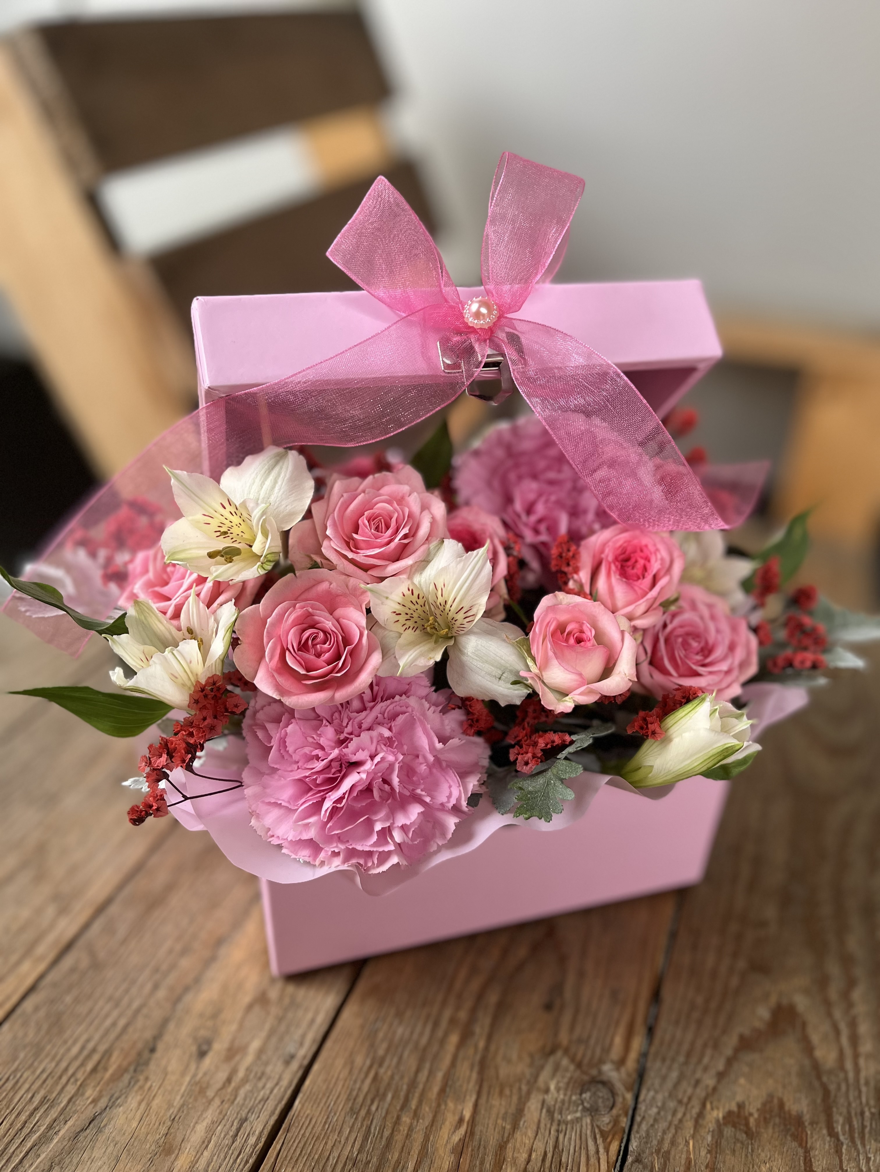 Розовая композиция в коробочке